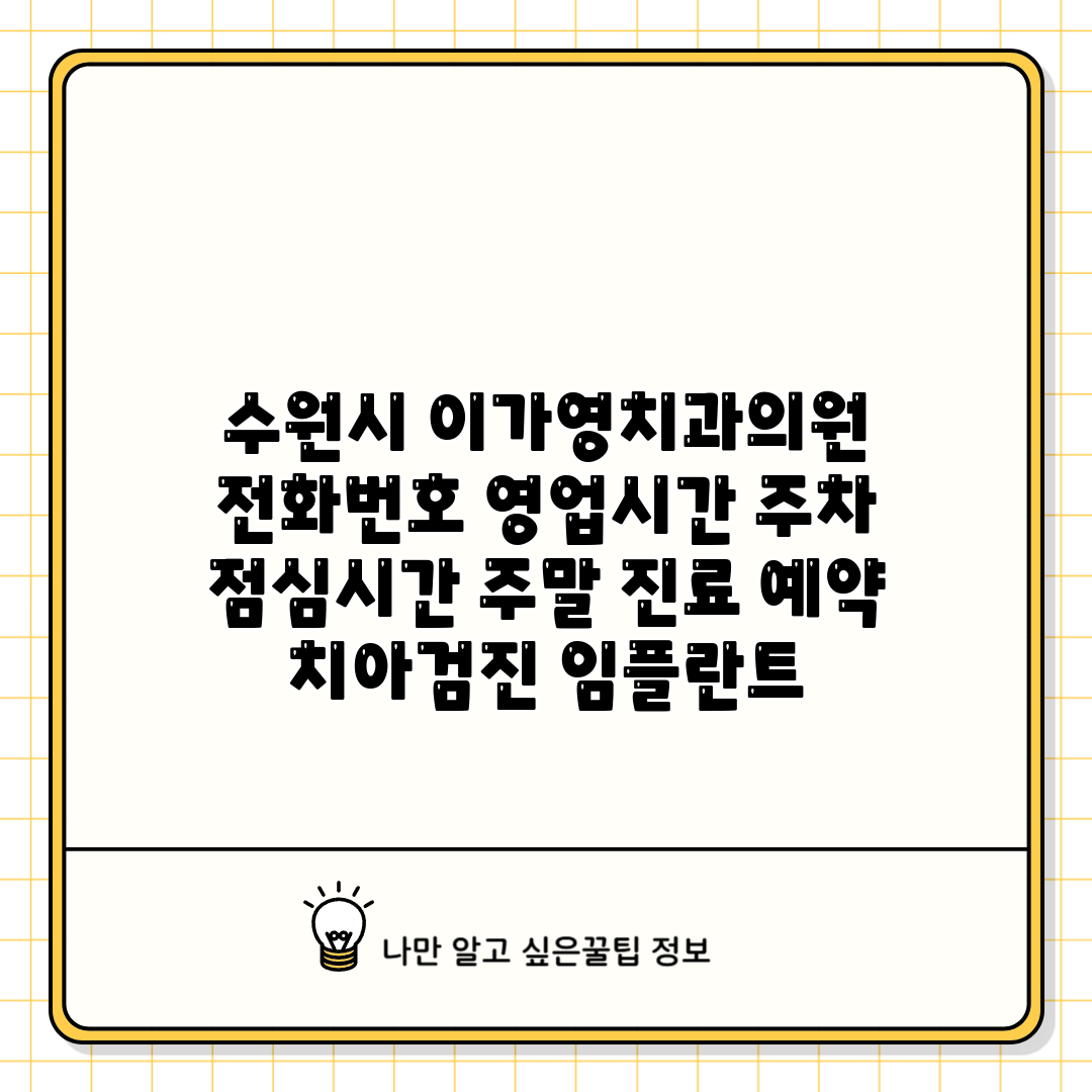 고민하고 계신가요? 수원시 이가영치과의원에서 제공하는 임플란트 치료와 치아 검진 서비스를 통해 건강한 미소를 되찾아보세요!