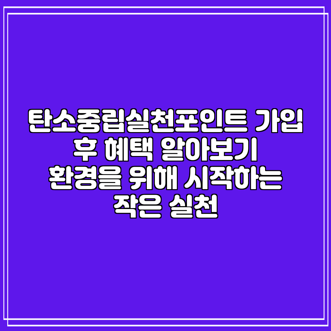 탄소중립실천포인트에 가입하고 다양한 혜택을 누리는 방법을 알아봅시다. 이 가이드는 각 혜택을 실제로 활용하는 방법을 단계별로 안내합니다.