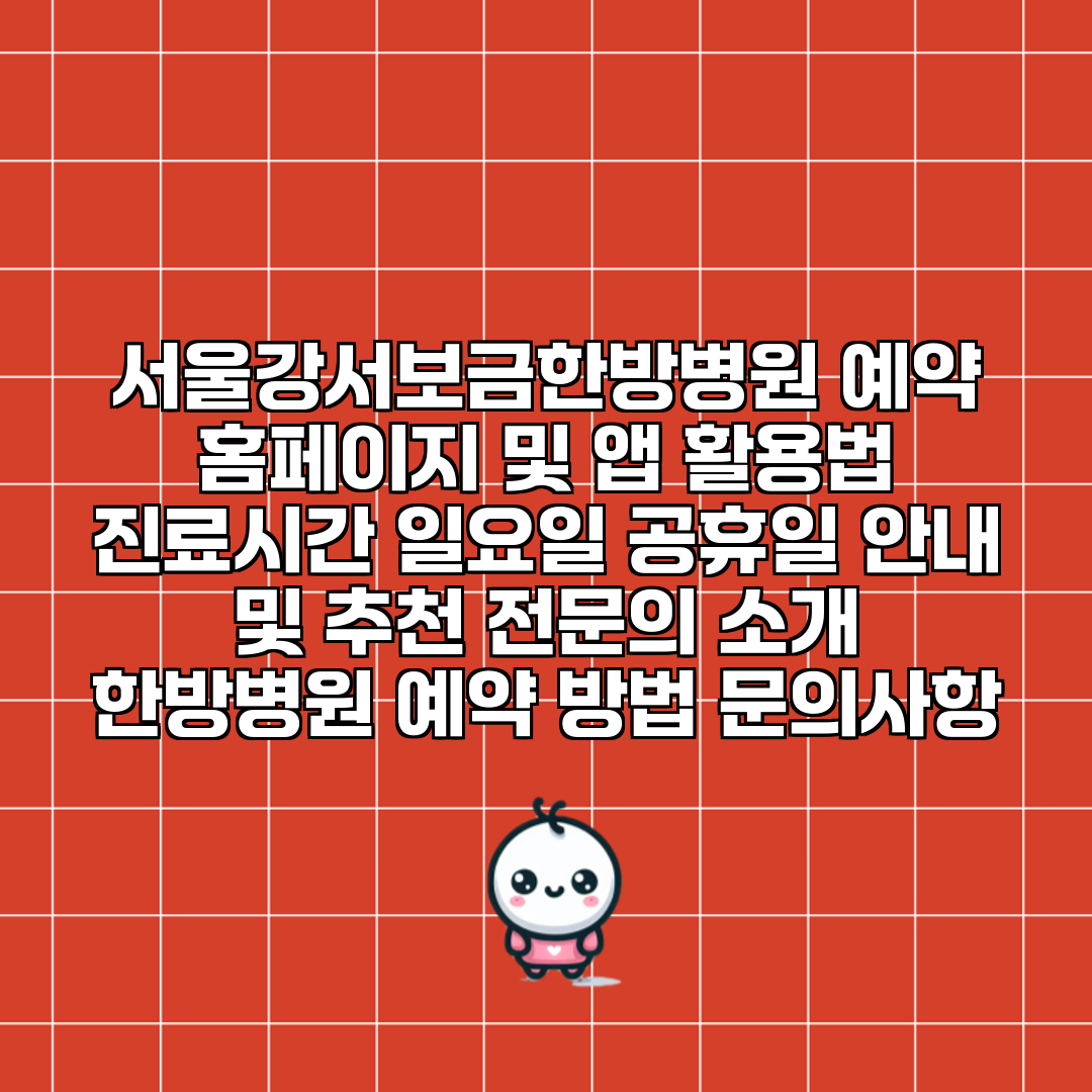 💡 서울강서보금한방병원 예약 절차를 쉽게 알아보세요. 💡