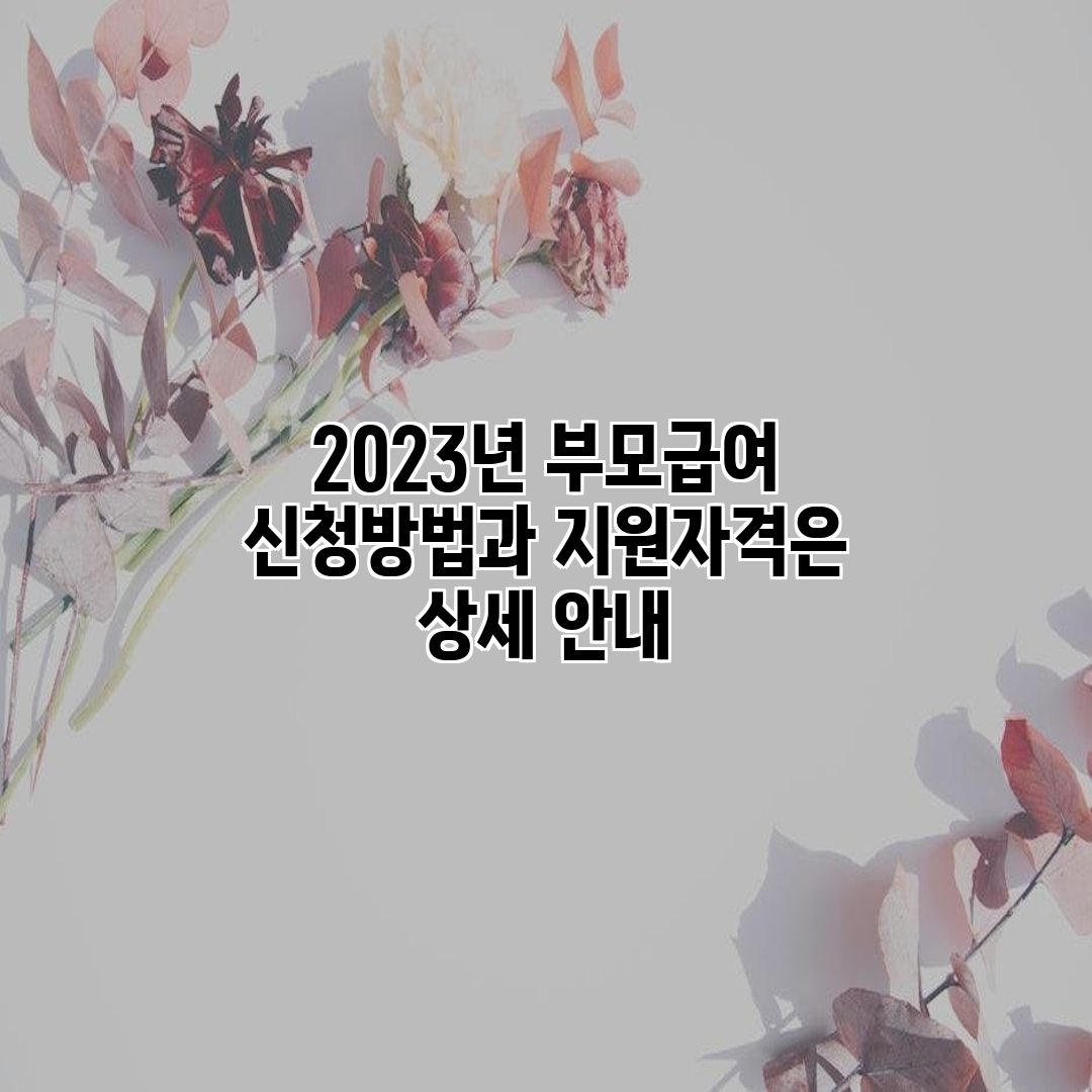 💡 2023년 부모급여 신청 요건과 절차를 자세히 알아보세요. 💡