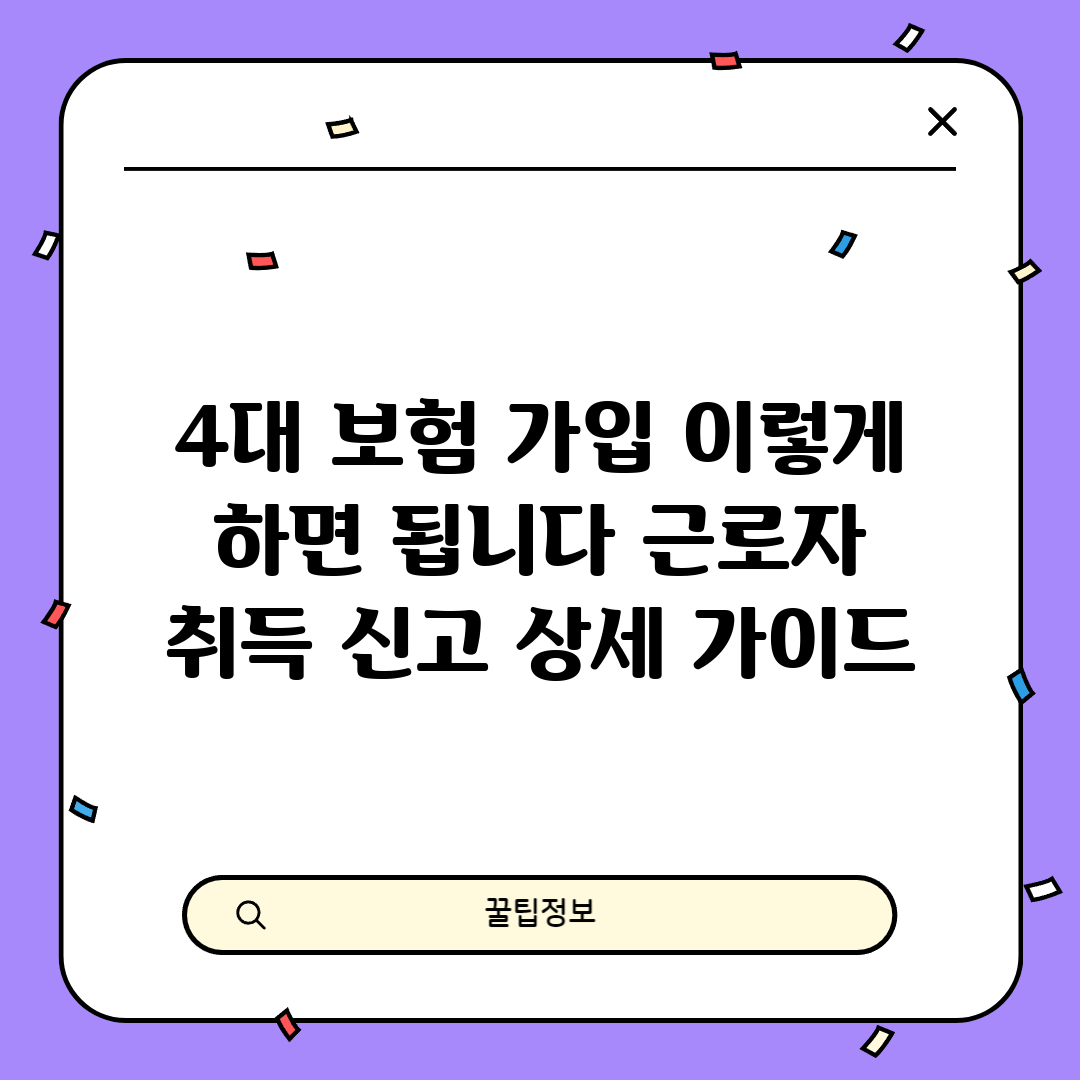 A: 근로자 취득 신고는 근로자가 취업한 후 14일 이내에 사업주가 국민연금공단, 건강보험공단, 고용보험공단에 온라인 또는 오프라인으로 진행해야 합니다. 각 기관의 웹사이트에서 관련 양식을 다운로드하거나 온라인 서비스 이용이 가능합니다.