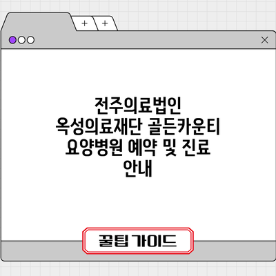 전주의료법인 옥성의료재단 골든카운티 요양병원 예약 및 진료 안내