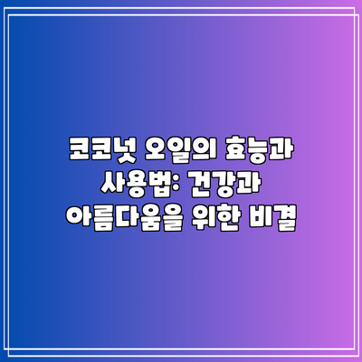 코코넛 오일의 효능과 사용법: 건강과 아름다움을 위한 비결