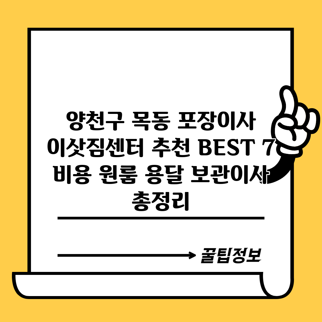 양천구 목동 포장이사 이삿짐센터 추천 BEST 7 비용 원룸 용달 보관이사 총정리